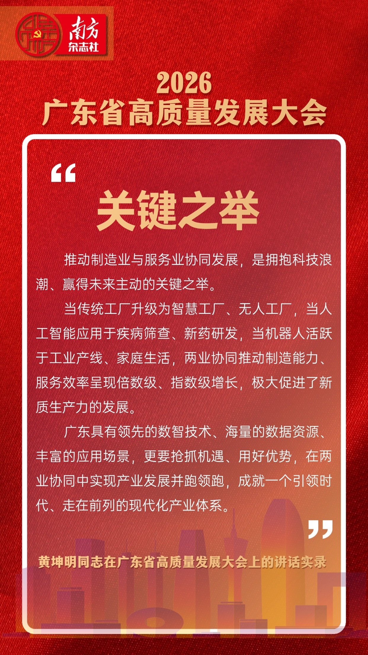 2026年2月24日,农历丙午马年春节后第一个工作日,广东“新春第一会”——全省高质量发展大会四连打卡。在浓浓的年味中,广东再次吹响集结的号角,以制造业与服务业协同发展为主题,共同探讨广东高质量发展新路。