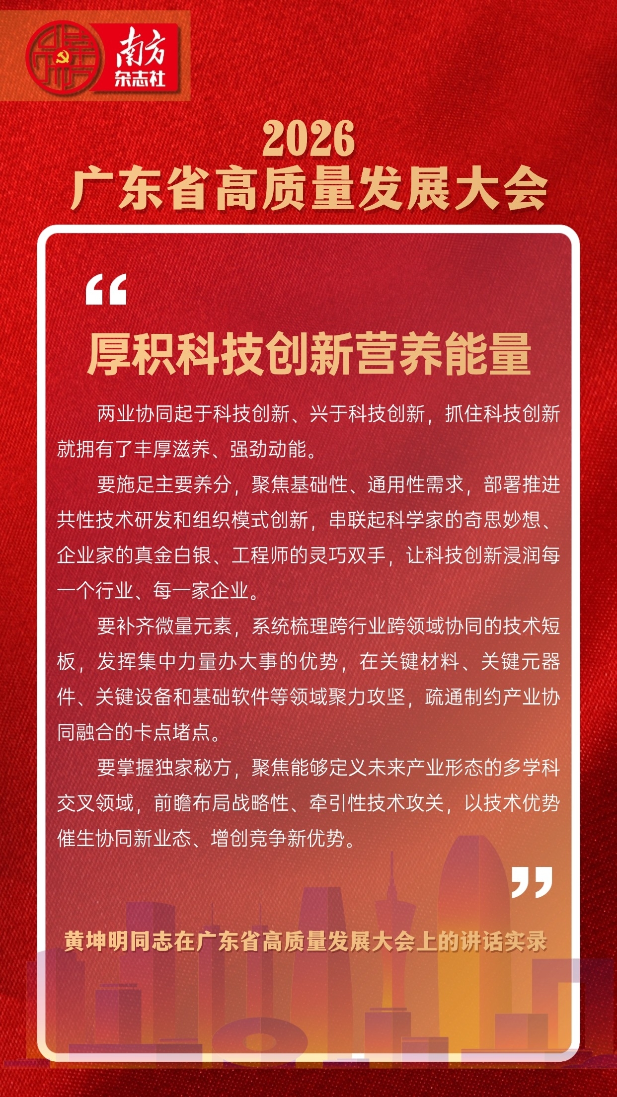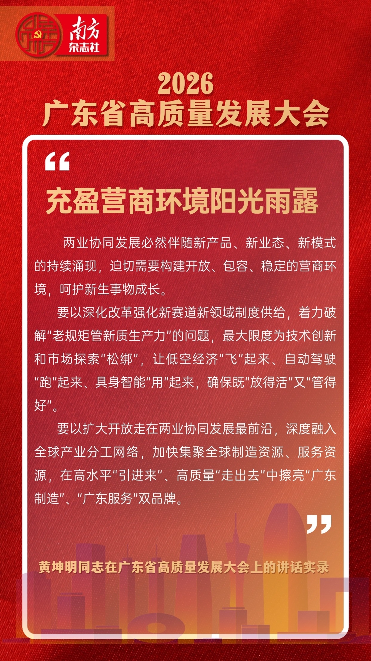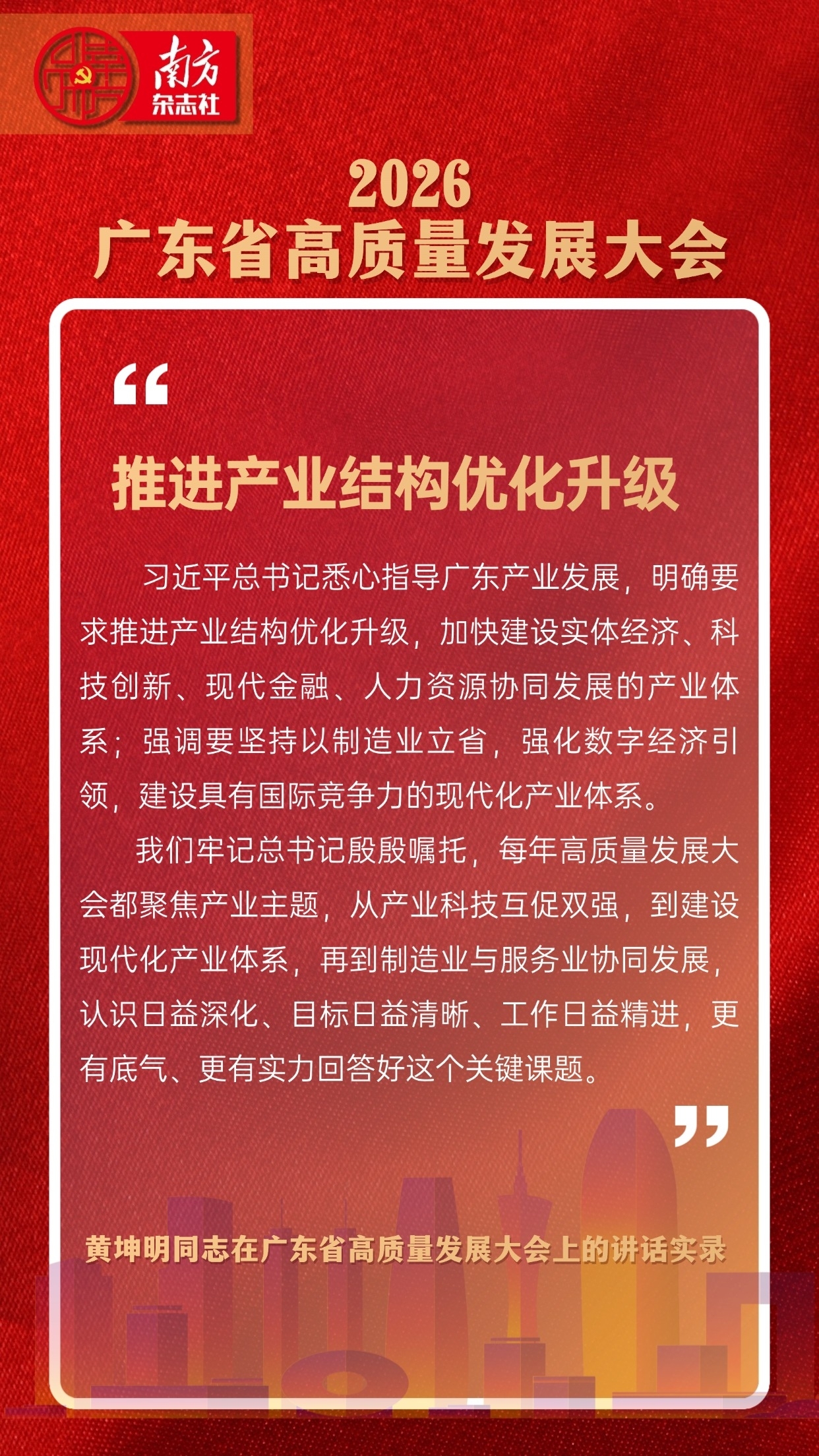 “我们牢记习近平总书记殷殷嘱托,每年高质量发展大会都聚焦产业主题,从产业科技互促双强,到建设现代化产业体系,再到制造业与服务业协同发展,认识日益深化、目标日益清晰、工作日益精进,更有底气、更有实力回答好这个关键课题。”广东省委书记黄坤明在全省高质量发展大会上表示。